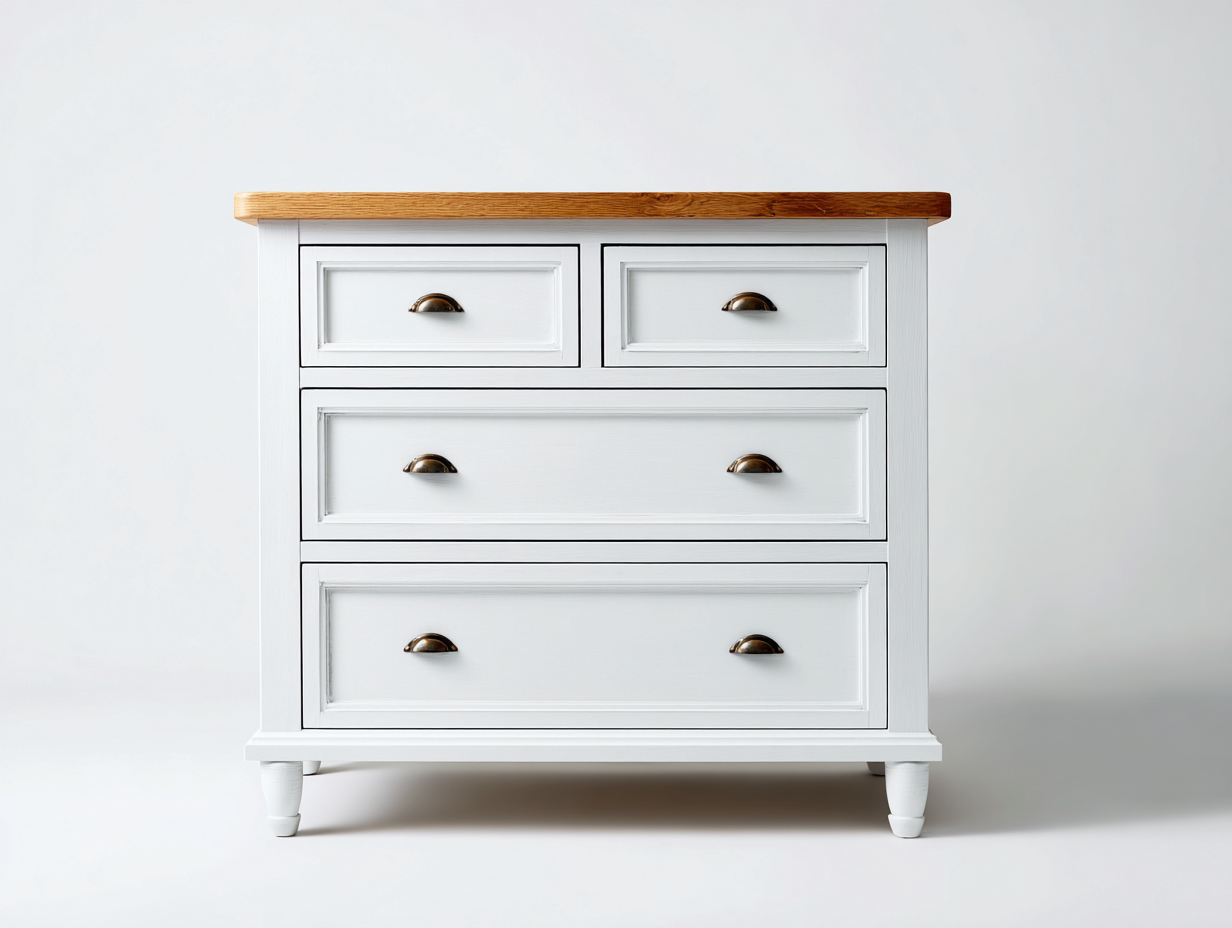 Chest of Drawers solid wood top MDF frame 80x40x90 cm - white-brown - classic storage design
